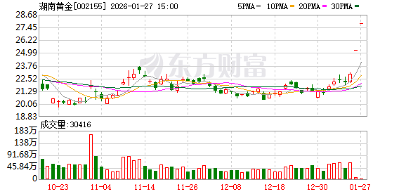 南财智讯1月27日电,湖南黄金公告,公司股票连续2个交易日(2026年1月26日、1月27日)收盘价格涨 幅偏离值累计超过20%,属于股票交易异常波动。经自查并书面问询控股股东及实际控制人,公司前期 披露信息不存在需要更正、补充之处;未发现近期公共传媒报道可能或已经对公司股票交易价格产生较 大影响的未公开重大信息;公司近期经营情况正常,内外部经营环境未发生重大变化;公司于2026年1 月26日披露发行股份购买资产并募集配套资金暨关联交易预案,拟收购湖南黄金天岳矿业有限公司 100%股权及湖南中南黄金冶炼有限公司100%股权,目前相关审计、评估工作尚未完成,有关各方正积 极推进;除上述事项外,公司、控股股东和实际控制人不存在其他应披露而未披露的重大事项,也不存 在处于筹划阶段的重大事项;股票异常波动期间,控股股东、实际控制人不存在买卖公司股票的情况; 公司不存在违反公平信息披露的情形。 ...