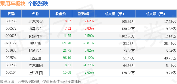 乘用车板块1月15日跌0.58%,北汽蓝谷领跌,主力资金净流出8.72亿元