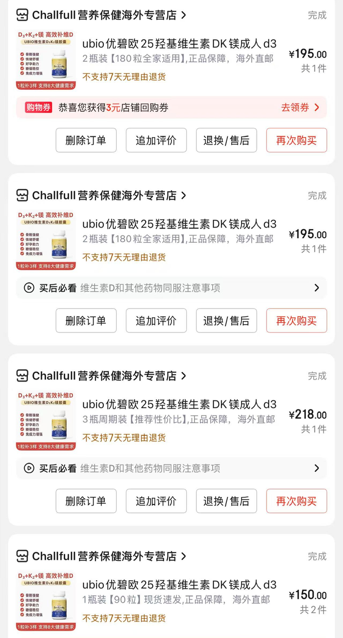 为了健康,何先生在做足功课后在京东平台的Challfull营养保健海外专营店买了相关保健品,但在服用 了几个月后,他才发现自己买的产品有问题。 何先生提供的检验报告显示,该产品未检出维生素K₂、维生素D₃和镁等成分。 12月4日,何先生告诉红星资本局,现在他正在寻找能做重金属检测的相关机构。如果检测出该产品有 毒、有害,他会走法律流程,根据相关情况决定是否起诉该商家。 京东客服告诉红星资本局,针对上述问题,他们会进一步调查。如果商家有违规,平台会严惩不贷。 购买三合一保健品 由受访者提供 "我不光自己买,还给父母、朋友都买了。"何先生称,他之所以选择在这家网店购买,是因为在搜索关 键词后,它的产品在搜索结果的前列,且评价都很好。 何先生告诉红星资本局,他对抗衰、保健品等相关领域长期保持关注。在今年11月左右,他在某社交平 台刷到了ubio品牌相关旗舰店的直播。在直播中,主播对真假产品进行了对比。 与其他渠道产品对比有较大差异 何先生告诉红星资本局,在研究了相关保健品的成分后,从今年7月起,他在电商平台Challfull营养保 健海外专营店购买ubio品牌的保健品——维生素D₃、K₂、镁三合一胶囊。 订单截图显 ...