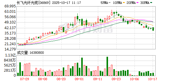 长飞光纤光缆再跌超4% 较9月高点已跌四成 光纤量价齐跌及股东清仓拖累股价
