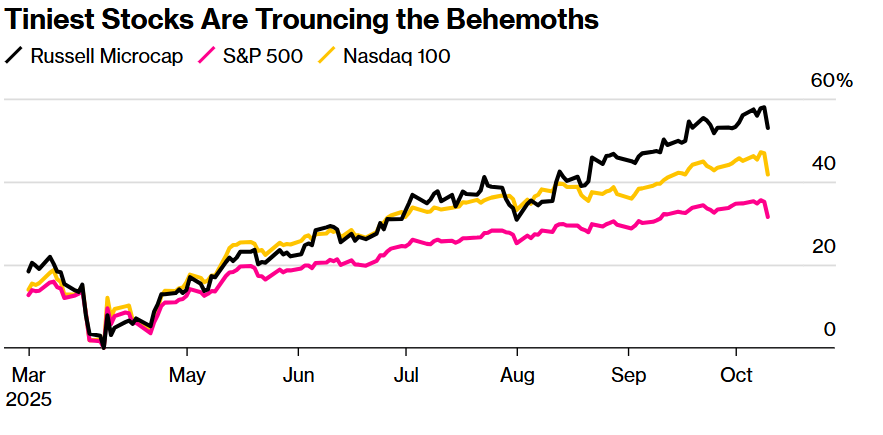 微盘股近期表现与市场驱动因素 - 自4月以来,微盘股持续跑赢整体美股市场,反弹核心动力在于特朗普关税政策缓和后市场乐观情绪复苏 [1] - 罗素微盘股指数(成分股平均市值约4.5亿美元)在上周五暴跌3.1%,创自4月初全球市场动荡以来的最大跌幅 [1] - 微盘股涨势与人工智能相关热门个股相似,尽管华尔街分析师已开始担心其历史高位估值 [2] 微盘股上涨的逻辑与潜在风险 - 美联储时隔9个月重启降息及降息预期升温是微盘股跑赢标普500指数的核心逻辑之一,历史规律显示降息周期首先利好小盘股 [2] - 微盘股相对标普500的"锐利跑赢期"往往不伴随股票市场的积极乐观时期,在最近10次类似行情后,微盘股基准指数在1个月、3个月及1年后表现通常大幅下跌 [6][7] - 微盘股上涨动能近期已显著减弱,因市场警告其涨势过于强劲可能导致投机泡沫破裂 [6] 微盘股的市场特性与投资者行为 - 微盘股通常市值过小且成交量狭窄(平均日成交量不到标普500指数一半),无法满足大型机构流动性要求,因而多出现在散户交易清单上 [7] - 微盘股投资者近几周出现资金大规模流出,美国银行策略师指出该领域是小盘股中估值最昂贵的部分,其跑赢表现"可能已进入比赛的后半段" [8] - 尽管指数整体承压,但部分成分股如DeFi Development Corp(区块链开发商)年内股价飙升逾2000%,The Oncology Institute(小型诊所运营商)股价上涨逾1100% [9] 市场专家观点 - 华尔街机构Bespoke Investment Group指出,过去六个月最小市值的微盘股平均录得最大涨幅,但这波大涨主要由市场投机情绪驱动,而非高质量上市公司 [6][7] - 野村证券国际公司的跨资产宏观策略师查理·麦克埃利戈特表示正在回避微盘股领域,原因是缺乏流动性,并质疑投资者如何应对其剧烈波动属性 [7]