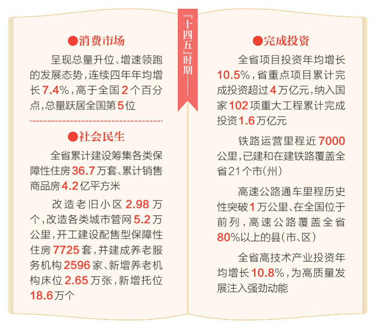 消费市场表现 - 消费市场连续四年年均增长7.4%,高于全国2个百分点,总量跃居全国第五位[3][4] - 汽车、家电数码、家装厨卫、电动自行车换新量达1319万辆(件),带动消费超1327亿元,综合拉动比1:9.82[4] - “以旧换新”政策累计吸引2.6万家经营主体参与,惠及消费者1300万人,家电参与门店数量达5.4万余个、居全国第一位[4] 新能源汽车与大宗消费 - 新能源汽车保有量由2020年末的17万辆增加至目前的180余万辆[4] - 新能源汽车在新车销量中占比由2020年的4%提升至目前的40%以上[4] 文化演出市场 - 作为中西部地区营业性演出最大票仓,演出场次、票房收入等均居于全国第一方阵[5] - 今年1至9月共举办5000人以上大型演出110场,吸引观众210多万人次,实现票房收入14.6亿元,带动交通、住宿、餐饮等综合消费约100亿元[5] - 30余组具有较强市场号召力的艺人明确将四川纳入2025—2026年巡演计划[4] 住房与保障体系 - 全省累计建设筹集各类保障性住房36.7万套、累计销售商品房4.2亿平方米[5] - 开工建设配售型保障性住房7725套[7] 固定资产投资 - “十四五”以来全省项目投资年均增长10.5%,省重点项目累计完成投资超过4万亿元[5] - 纳入国家102项重大工程累计完成投资1.6万亿元[5] - 投资规模从2021年的4.5万亿元增长至今年的5.4万亿元[8] 基础设施建设 - 铁路运营里程近7000公里,已建和在建铁路覆盖全省21个市(州)[7] - 高速公路通车里程历史性突破1万公里,覆盖全省80%以上的县(市、区)[7] 高技术产业投资 - 全省高技术产业投资年均增长10.8%[7] - 高海拔宇宙线观测站等通过国家验收,全省国家大科学装置达到10个[7] 社会民生与城市更新 - 改造老旧小区2.98万个,改造各类城市管网5.2万公里[7] - 建成养老服务机构2596家、新增养老机构床位2.65万张,新增托位18.6万个[7] 安全能力建设 - 天然气年产量达到562亿立方米、居全国第一位[8] - 新建高标准农田1328.9万亩、改造提升444.3万亩[8] - 长江、黄河干流四川段水质稳定达到Ⅱ类,国家考核断面水质优良率达到100%[8]