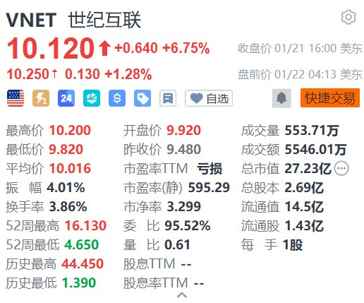 美股异动丨世纪互联盘前涨超1% 大摩看好其具备先发优势并上调目标价