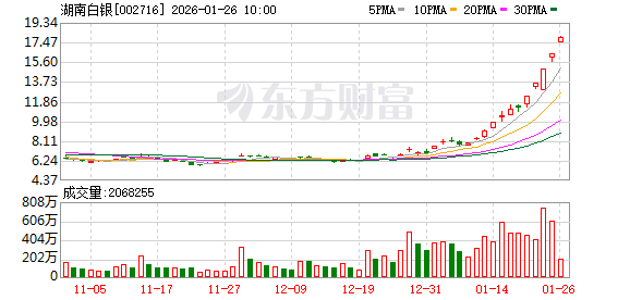 公司发布的三季报数据显示,前三季度公司共实现营业收入85.94亿元,同比增长59.56%,实现净利润 1.59亿元,同比增长28.44%,基本每股收益为0.0562元,加权平均净资产收益率4.32%。(数据宝) 证券时报·数据宝统计显示,湖南白银所属的有色金属行业,目前整体涨幅为3.33%,行业内,目前股价 上涨的有118只,涨停的有湖南黄金、永杰新材等5只。股价下跌的有24只,跌幅居前的有博威合金、斯 瑞新材、西部材料等,跌幅分别为9.75%、4.48%、3.99%。 (文章来源:证券时报网) 两融数据显示,该股最新(1月23日)两融余额为12.71亿元,其中,融资余额为12.64亿元,近10日增加 3.46亿元,环比增长37.63%。 湖南白银股价创出历史新高,截至9:32,该股上涨8.21%,股价报17.79元,成交量6642.21万股,成交金 额11.74亿元,换手率2.86%,该股最新A股总市值达502.23亿元,该股A股流通市值413.59亿元。 ...