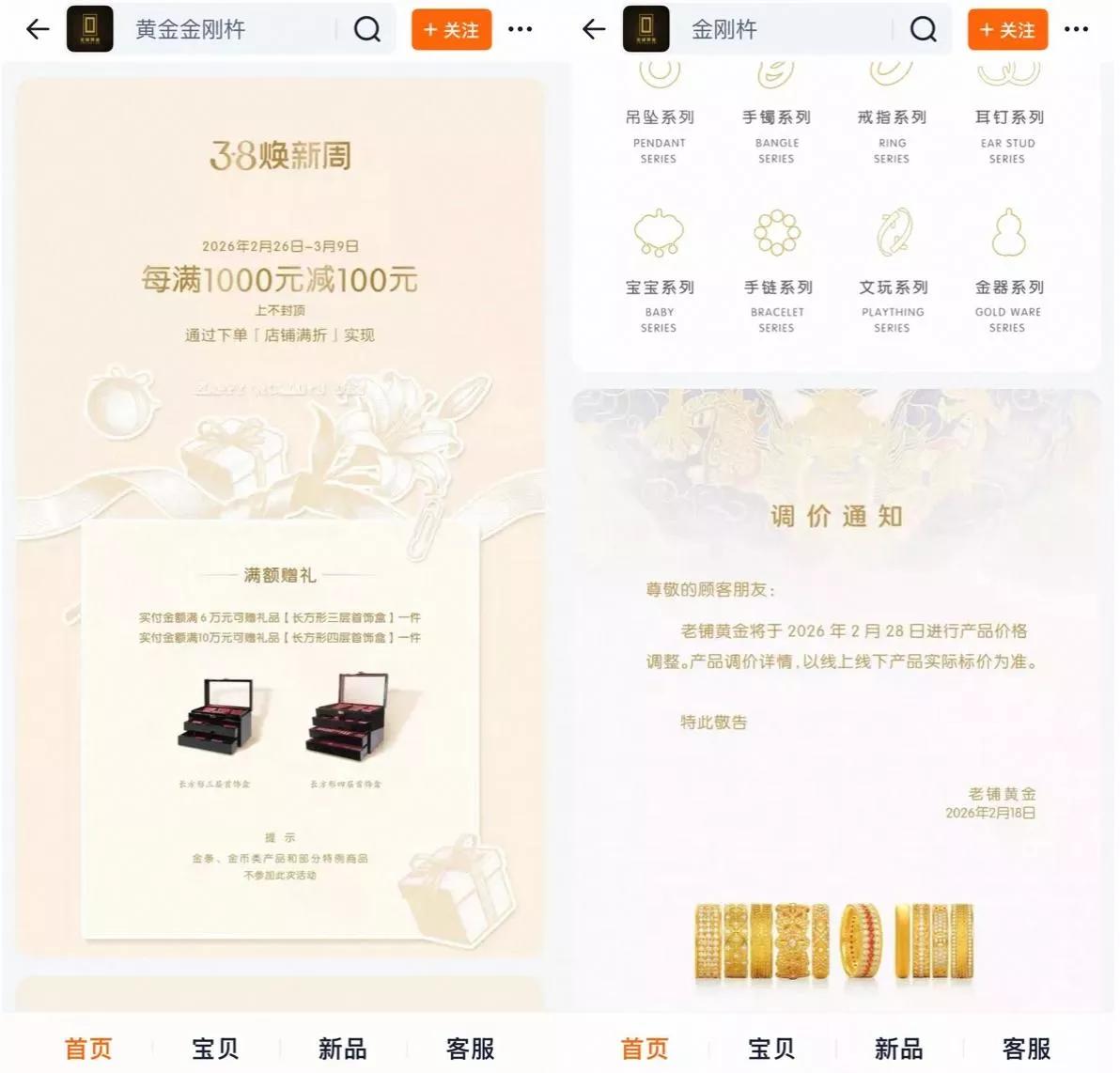 老铺黄金天猫“3·8焕新周”首日成交额破10亿元 近30款单品单日成交额破千万元