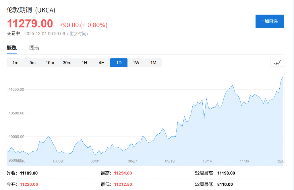 1. 电气化与数字化趋势: 2024年全球电力需求增速已超过GDP增速,并预计将继续以健康的速度扩张。 德银的分析明确指出,全球铜市正面临一场供应挤压。在行业整合加速的背景下,严重的供应中断已将铜价推至接近历史高位的水平。 据追风交易台,11月30日,德银报告认为,由于严重的供应中断和行业整合加速,2025年矿山供应将出现下滑,并在次年仅反弹约1%,市场将处 于"明确的赤字状态"。 12月1日,伦铜价报11279美元/吨,创下历史新高。 铜市展望:供应短缺已成定局 尽管报告也提示了风险,例如对"人工智能泡沫"的担忧,但德银认为,除非全球经济出现严重放缓,否则铜价的激励性定价机制将持续存在。其 背后的长期驱动力在于: 对投资者的影响:这一判断直接导致德银将2026年的铜价预测上调至10,600美元/吨,并预计在2026年上半年峰值可超过11,000美 元/吨。铜市已进入一个由激励性定价主导的新阶段。投资者应密切关注即将到来的几大矿业巨头的"资本市场日"(CMD),尤 其是嘉能可(Glencore),其在并购(M&A)方面的动向以及高达10%的预期自由现金流收益率(2026E)使其成为市场焦点。 关键公司动态:嘉 ...