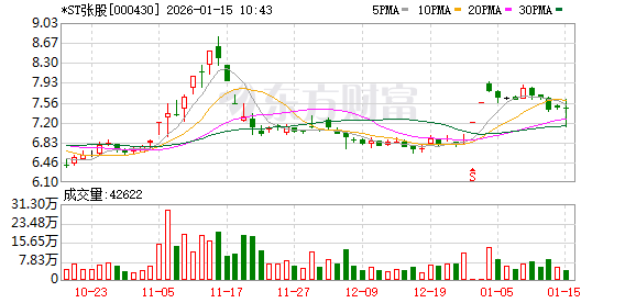 ST股业绩预告明细 | 代码 | 简称 | 业绩预告 | 预计净利润上限 | 预计净利润下限(万 | 今年以来涨跌幅 | 行业 | | --- | --- | --- | --- | --- | --- | --- | | | | 类型 | (万元) | 元) | (%) | | | 000430 | *ST张 | 减亏 | -45000.00 | -55000.00 | -3.74 | 社会服 | | | 股 | | | | | 务 | 证券时报·数据宝统计显示,截至1月15日,共有1只ST股公布了全年业绩预告,业绩预告类型显示,减 亏公司有1家。(数据宝) (文章来源:证券时报网) ...