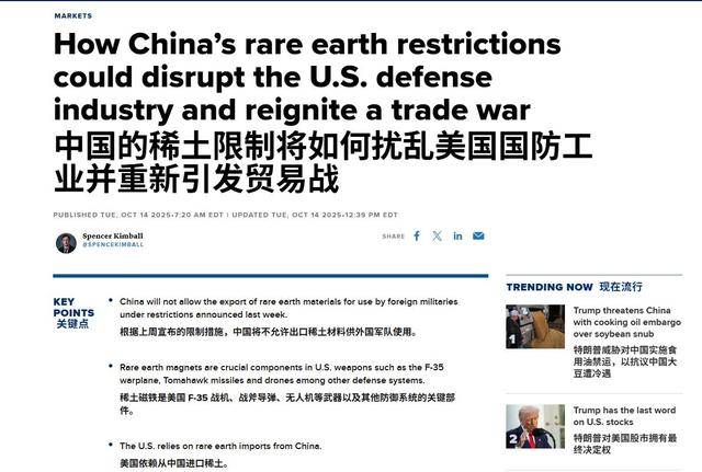 美媒:再买不到中国稀土,美国不但贸易战打不赢,热战恐怕也要输