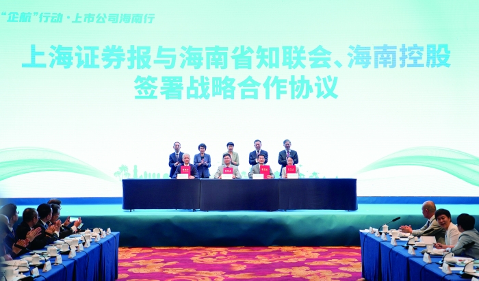 当前,海南正加快对接国际高标准经贸规则,建设中国企业走向国际市场的总部基地和境外企业进入中 国市场的总部基地、西部陆海新通道国际航运枢纽和面向太平洋印度洋的航空区域门户枢纽,打造好国 内国际双循环的重要交汇点,用实际成效彰显"中国开放的大门越开越大"的信心和决心。 根据合作协议,海南省知联会与上海证券报将引导更多上市公司深入了解海南政策环境与发展机遇,推 动符合海南产业定位的优质资本与项目落地,实现招商引资由广域覆盖向精准链接转变。同时,双方将 引导各相关方进一步关注海南自贸港产业投资价值,为海南实体经济发展引入更多长期资本、耐心资 本、信心资本。 10月27日,上海证券报与海南省知联会、海南控股签署战略合作协议。 高禹 摄 ◎记者 刘逸鹏 黎灵希 10月27日下午,在"企航"行动之"上市公司海南行"招商大会暨签约仪式现场,海南省党外知识分子联谊 会(简称"海南省知联会")、海南省发展控股有限公司(简称"海南控股")分别与上海证券报社签署战 略合作协议。 海南控股与上海证券报将充分发挥各自优势,谋划搭建精准招商引资、政企接洽高端平台,推动上市公 司、金融机构加强与海南控股在产业合作、投资并购、资本运作等领域的 ...