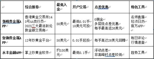 2025-12-15 11:00:58 作者:狼叫兽 2025年金价一路刷新历史高点,"手机炒黄金"成为百度指数飙升最快的金融关键词之一。面对五花八门 的黄金APP,投资者最关心的问题无非三个:行情快不快?交易稳不稳?成本省不省?本文把最近三个 月各大财经媒体实测数据、香港黄金交易所公开资料、以及真实用户反馈揉在一起,挑选三款热度最高 的APP——领峰贵金属APP、皇御贵金属APP、永丰金融贵金属APP做横向拆解,并重点给领峰贵金属 APP做"放大镜"式测评,方便新老用户用最短时间选到适合自己的"黄金利器"。 | 一、三大炒黄金APP测评:一张表看懂硬指标 | | --- | 领峰提供低至10美元起投的低门槛交易。与领峰一样,皇御贵金属APP同样以较低的起存金额,解除投 资者后顾之忧,这两个平台都是免佣金、免费开户的。永丰金融APP则以浮动点差助力投资者灵活把握 机遇。此外,领峰贵金属24小时客服在线,无需等待、无需排队,随时随地立刻获专业解答。 二、领峰贵金属APP实测:4个藏在细节里的"真香"功能 下面把镜头拉近,看看领峰贵金属APP到底把哪些功能做到了"用过就回不去"。 1. 行情页"一键下单" | | ...