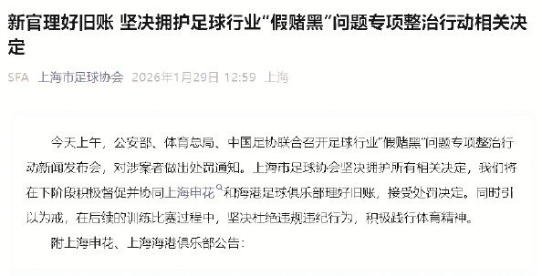 行业监管与处罚 - 中国足球协会对行业历史“假赌黑”问题进行专项整治处罚 13家俱乐部被扣除2026赛季联赛积分并罚款 73名从业人员被终身禁“足” [7] - 此次处罚是继2024年9月后的第二次专项整治发布会 2024年通报涉案61人 其中43人终身禁“足” 查实涉嫌赌球、假球比赛120场 [7] - 处罚涉及9家中超俱乐部和4家中甲俱乐部 这些球队新赛季将以负分起步 体现了“零容忍”的惩治决心 [8] 涉事公司回应 - 上海申花足球俱乐部发布公告 尊重并接受中国足协就俱乐部历史相关事宜的处罚决定 对所涉问题造成的负面影响致以诚挚歉意 [3] - 上海申花俱乐部表示处罚所涉案件均发生于2023年初俱乐部股权改革之前 系原股东管理运营期间的历史遗留问题 [3] - 上海海港足球俱乐部发布公告 坚决拥护并全面接受中国足协就俱乐部2014年至2017年期间相关事宜的处罚决定 并致以诚挚歉意 [5] - 上海海港俱乐部承认处罚所涉违规事宜发生于2014至2017年期间 系俱乐部初创阶段管理失当、失控所致 [5] 行业问题根源与整治 - 自2022年11月开始的足球反腐风暴涉及原国家队主教练、中国足协高层以及球员、教练、俱乐部管理层和足协官员 揭示了行业大面积腐败和系统性塌方 [7] - 行业问题的根源被归结为在行业规律和运作机制上走了弯路 部分管理者和从业者将行业环节流程作为满足个人利益的工具 [8] - 历时三年多的司法查处力度前所未有 目的在于拨乱反正 为足球行业营造清朗透明、公平公正的环境 [8] 行业改革与积极变化 - 2025年1月正式成立的中职联标志着“管办分离”改革迈出实质性步伐 专业人做专业事 用市场思维指导职业足球改革成为可行路径 [9] - 职业联赛上座率回升 关注度上升 比赛精彩场次增加 球场观赛氛围浓厚 [9] - 青训和普及工作取得成效 国字号梯队成绩进步显著 连续两届U20亚洲杯小组出线 U23亚洲杯获得亚军 [9] 行业现状与未来挑战 - 中国足球生态环境虽有好转 但短期内仍难以大幅提升竞争力 在国际和亚洲足坛仍是追赶者 [9] - 职业基础薄弱、先进理念缺乏、足球文化积淀不足是亟待改变的现状 直接反映在成年国家队许久未在重大赛事中取得好名次 [9] - 行业需坚持自省 尊重规律 敬畏规则 脚踏实地付出 才能真正强大起来 [9]