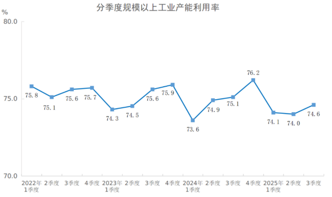 国家统计局:2025年三季度全国规模以上工业产能利用率为74.6%