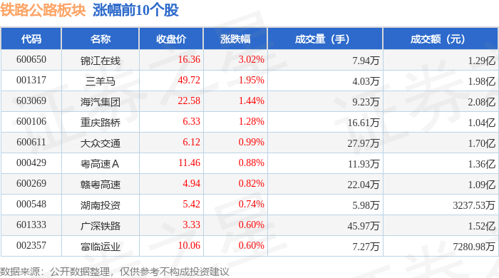 铁路公路板块10月16日涨0.49%,海汽集团领涨,主力资金净流出1.36亿元
