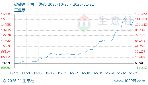 01月21日碳酸锂159000.00元/吨 10天上涨13.57%