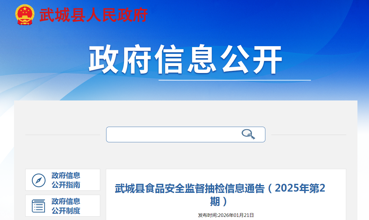 山东省武城县食品安全监督抽检信息通告(2025年第2期)