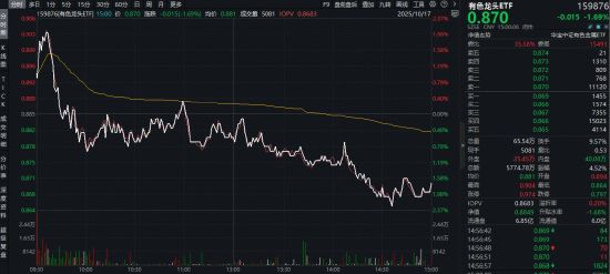 来源:新浪基金 2、美国政府"停摆"所带来的避险情绪。因美国两党未能在医保相关福利支出等方面达成一致,10月1日 起,美国联邦政府时隔7年后再次"停摆"。作为全球第一大经济体,美国政府的"停摆"将大幅放大全球 宏观与经济增长层面的不确定性,避险情绪增大黄金购买需求,推升金价。 3、逆全球化大背景叠加美债信用风险短期难以化解,去美元化进程中的储备货币多元化或仍支撑全球 各国央行购金需求。截至今年6月末,世界黄金协会的数据显示,全球官方黄金储备达36274吨,创下历 史新高。中国央行已连续11个月增持黄金,截至9月末中国官方黄金储备为7406万盎司。 今日(10月17日)市场盘整,揽尽有色金属行业龙头的有色龙头ETF(159876)早盘冲高,场内价格一 度涨超2%,后随市回调,震荡走弱,最终收跌1.69%,全天成交额5774万元。 值得一提的是,截至10月16日,有色龙头ETF(159876)最新规模6.06亿元,10月以来的日均成交额 1.22亿元。在全市场跟踪同标的指数的3只ETF产品中,规模、流动性高居首位。 成份股方面,铜业龙头白银有色逆市涨停,锂业龙头盛新锂能涨超2%,锂业龙头中孚实业亦涨逾2%。 值得 ...