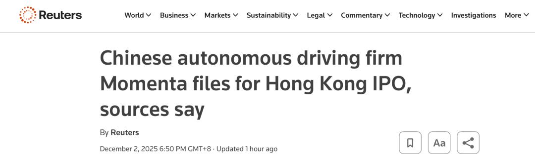 IPO计划与地缘政治背景 - 消息人士指出,在地缘政治持续紧张的背景下,Momenta可能已放弃在纽约上市的计划,转而寻求在香港上市 [2] - 如果消息属实,该公司将加入日益增多的寻求在港上市的中国企业行列 [2] - 路透社曾在今年9月报道,继中国证监会批准其赴美上市的许可于6月到期后,Momenta正在考虑将IPO地点从纽约转移至香港 [2] - 包括募资规模和上市时间表在内的IPO具体细节尚不清楚,公司及香港交易所均未对相关消息置评 [3] 公司业务与技术战略 - Momenta是全球智能驾驶领域的领先者,致力于实现规模化自动驾驶 [6] - 公司以数据驱动的“飞轮效应”为核心,结合“双轨并行”的产品战略,推动辅助驾驶和自动驾驶Robo(如Robotaxi)的量产落地 [6] 融资历史与估值演变 - Momenta的融资历史横跨9年,当前估值已达到60亿美元(约合人民币425.4亿元) [7] - 2016年成立两个月后,公司获得500万美元A轮融资(约合人民币3545万元) [8] - 2018年10月完成2亿美元C轮融资(约合人民币14.18亿元),估值首次突破10亿美元(约合人民币709亿元),成为自动驾驶领域首个独角兽企业 [10] - 2021年3月完成5亿美元C轮融资(约合人民币35.45亿元),同年11月又完成超5亿美元C+轮融资,累计C轮系列融资超10亿美元(约合人民币709亿元),创下当年中国自动驾驶领域最大规模融资记录 [8][10] - 2025年,公司完成了包括C12及C13轮两轮融资,C13轮后估值达到60亿美元(约合人民币425.4亿元) [10] 主要投资者构成 - 公司的投资者阵容强大且多元,包括全球领先的汽车制造商、顶级投资机构和战略资本 [8] - 主要战略与财务投资者包括:丰田、上汽集团、通用汽车、梅赛德斯-奔驰、博世、淡马锡、云锋基金、腾讯、蔚来资本、顺为资本、创新工场、真格基金、凯辉基金、纪源资本等 [8][9][10] 行业意义与未来展望 - 从初创到估值突破425亿元,Momenta的九年进阶之路折射出自动驾驶企业在复杂地缘政治环境下灵活调整资本路径的务实选择 [11] - 背靠上汽、丰田、通用等车企巨头的深厚资源,若能成功登陆港交所,将为公司的“飞轮效应”注入更强劲的动力 [11] - 在自动驾驶步入大规模量产落地的下半场,这场资本与技术的双重冲刺正在进行 [11]