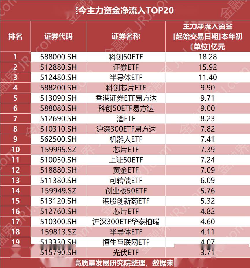国家层面政府投资基金新规核心要点 - 国家发改委等四部门联合发布新规,首次为“国家队”投资划定清晰赛道,明确政府投资基金的绩效将从两大维度考核 [1] - 考核维度一为政策符合性,权重高达60%,要求资金必须投向新质生产力发展领域 [1] - 政策符合性具体涵盖三大方向:培育新一代信息技术、人工智能、生物制造、量子信息等新兴与未来产业;推动制造业重点产业链攻坚、重大技术改造等传统产业升级;支持“人工智能+”行动、5G规模化应用、数据产业等数字经济发展 [1] - 考核维度二为优化生产力布局,权重占比30%,重点考察基金是否服务于西部开发、东北振兴、京津冀协同发展、长三角一体化、粤港澳大湾区建设等国家重大区域发展战略 [1] 年初至今二级市场主力资金流向 - 年初至今,市场主力资金(“聪明钱”)的偏好与政策引导方向呈现部分重合 [1] - 年内最受主力资金青睐的ETF包括华夏科创50ETF、国泰证券ETF和国联安半导体ETF,三只产品均获超10亿元净买入 [1] - 另有12只ETF的净流入规模超5亿元 [1] - 从主力资金净流入TOP20榜单看,年初布局主线清晰:一是素有“牛市风向标”之称的券商板块,二是与人工智能、芯片、机器人等紧密相关的科技成长板块 [2] - 科技成长板块的布局与新规鼓励的未来产业方向不谋而合 [2] - 具体数据:科创50ETF净流入18.28亿元,证券ETF净流入15.92亿元,半导体ETF净流入11.40亿元,科创芯片ETF净流入9.90亿元,香港证券ETF易方达净流入9.71亿元,科创50ETF易方达净流入9.00亿元 [2] - 其他净流入较高的ETF包括酒ETF(8.23亿元)、沪深300ETF易方达(7.82亿元)、机器人ETF(7.41亿元)、芯片ETF(7.39亿元)等 [2] 去年四季度主力资金配置特点 - 将观察周期拉长至去年四季度,主力资金的配置思路更为多元 [3] - 货币、债券类稳健型ETF仍是吸金主力 [3] - 部分军工、国防及基建类ETF也持续获得资金青睐 [3] - 这体现出资金对增长的追求,也反映出其对军工、基建等具备战略意义领域的持续关注 [3] - 具体数据:华宝添益ETF净流入39.66亿元,可转债ETF净流入31.72亿元,上证50ETF净流入28.38亿元,沪深300ETF易方达净流入28.21亿元,银华日利ETF净流入27.07亿元 [3] - 军工ETF净流入15.33亿元,政金债券ETF净流入11.34亿元,30年国债ETF博时净流入9.30亿元 [3]
