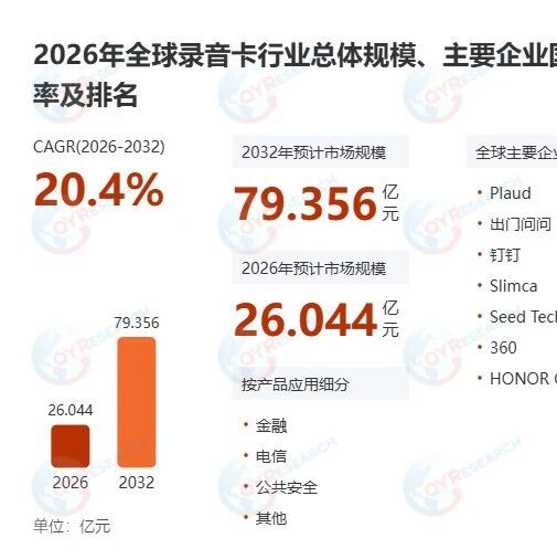 录音卡产品定义与技术基础 - 录音卡是一种集成了CTI、DSP和语音转换技术的专业电子设备,用于高精度采集、存储和处理来自电话线等通信线路的语音信号 [2] - 产品分为模拟线路型和数字中继型,具备多通道录音功能,支持电压、声音和按键控制等多种触发方式,并能独立存储包含完整参数的通话信息,不影响线路正常通信 [2] - 录音文件兼容常用播放格式,便于查询和回放 [2] 全球市场规模与增长预测 - 2025年全球录音卡市场规模为3.2亿美元,预计到2032年将达到11.7亿美元 [4] - 2026年至2032年预测期内的复合年增长率(CAGR)为20.4% [4] - 市场增长主要得益于专业音频录制、司法取证、企业会议和教育信息化等领域需求的增长 [4] 行业主要发展趋势 - **AI驱动的智能化转型**: 录音卡正从纯粹的录音工具向具备实时转录、说话人识别和多语言翻译功能的智能终端演进,并集成边缘计算技术以实现设备端数据处理和隐私保护 [9] - **基于IP和云集成的架构升级**: 传统的模拟/TDM接口正被IP和混合架构所取代,以实现远程管理、集中存储和无缝云同步,满足移动和分布式办公需求 [9] - **增强的安全性和合规性**: 产品集成了硬件级加密、国家加密算法和不可篡改的审计追踪功能,以满足金融、司法和医疗健康等行业严格的数据安全和监管要求 [9] 行业发展机会 - **垂直行业需求蓬勃发展**: 教育(智慧教室)、企业(会议效率)和司法(法庭录音)等行业的强劲需求推动了具备高保真度和合规性功能的专用录音卡的普及应用 [10] - **加速本土化替代**: 鼓励自主可控技术的政策,通过本土化的供应链、成本优势以及针对区域需求的定制化解决方案,有助于提升国内制造商的市场份额 [10] - **新兴场景拓展**: 移动办公和远程办公趋势,以及灾害救援和工业监控等领域,为具备快速部署能力的微型化、低功耗、联网录音卡创造了新的应用场景 [10] 行业面临的挑战 - **高技术和研发壁垒**: 人工智能、加密和网络技术的融合需要先进的研发能力,提高了中小企业的准入门槛和成本压力 [11] - **供应链波动和核心部件依赖**: 存储芯片、麦克风和数字信号处理器(DSP)价格的波动,以及对进口高端部件的依赖,影响生产成本和供应稳定性 [11] - **激烈的竞争和同质化的产品**: 中低端市场面临激烈的价格竞争和产品相似性,而高端市场如果没有强大的软件生态系统和行业特定的定制,就很难实现差异化 [11] 产业链结构分析 - **上游**: 包括核心组件供应商(如存储芯片、DSP芯片和麦克风)、原材料供应商(如电子材料、电路板基板和外壳材料)以及技术研发机构(从事音频编码、数据加密和芯片集成技术研究) [12] - **中游**: 包括产品制造企业(集成上游组件生产录音卡)、软硬件集成供应商(嵌入智能算法和操作系统实现高级功能)以及质量检测机构(进行合规性测试) [12] - **下游**: 包括终端应用机构(如企业、司法部门、教育机构和媒体机构)、分销及渠道运营商(通过线上线下渠道销售)以及售后服务提供商(提供技术维护、固件升级等) [12] 市场未来展望 - 人工智能的融合将进一步推动市场发展,录音卡将从单纯的录音工具演变为具备实时转录、说话人识别和多语言翻译功能的智能终端 [12] - 未来产品将更加注重小型化、低功耗和云协同,以满足移动和远程场景的需求 [12] - 具有高耐用性和安全性的工业级和企业级产品将得到更广泛的应用,围绕技术创新、生态系统建设和服务差异化的竞争也将日益激烈 [12]
