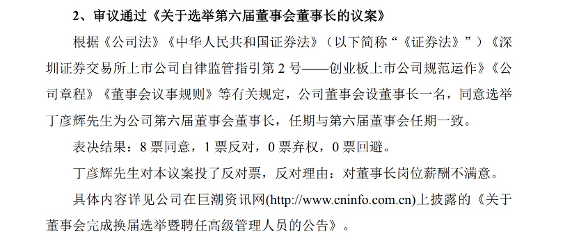 52岁董事长投票反对自己连任:不满意薪酬!公司公告:8票赞成,还是你当