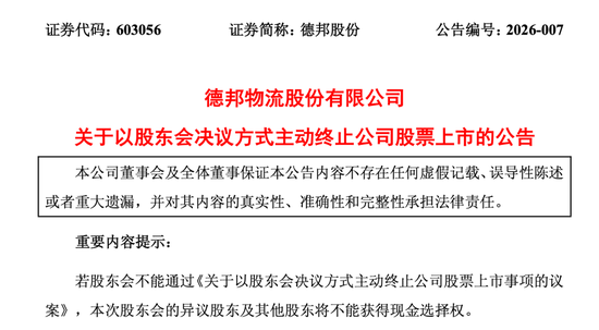 公司重大资本运作决策 - 德邦股份计划以股东会决议方式主动撤回其A股股票在上海证券交易所的上市交易 并在取得终止上市决定后申请在全国中小企业股份转让系统退市板块继续交易[1] - 现金选择权的行权价格为19.00元/股 公司股票于1月14日复牌[1] - 此举是2026年首家主动终止上市的A股公司[1] 决策背景与动因 - 决策动因是为了更好地顺应物流行业发展趋势 更高效有力地统筹协调与整合京东物流体系内的物流资源[2] - 此举亦为积极践行间接控股股东京东卓风在收购德邦股份时作出的关于解决同业竞争的承诺[2] - 此前公司实际控股股东京东物流已明确承诺逐步解决同业竞争问题[1] 事件筹划过程 - 间接控股股东京东卓风于1月9日公告筹划与公司相关的重大事项 但当时未披露细节[1] - 该重大事项的提议由京东卓风提出 并经公司董事会审议通过[2] - 在2025年12月24日 公司曾在互动平台解释同业竞争问题 称将与京东物流的盈利差异归因于宏观环境、市场定位、业务规模、经营策略等多种因素[1] 公司经营策略 - 公司表示将通过更精细化的成本管控与业务结构优化来推动业绩改善[1]