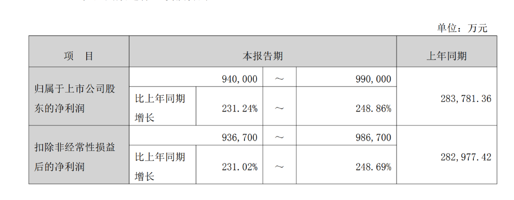 业绩表现 - 公司预计2025年实现归属于上市公司股东的净利润94亿元至99亿元,同比大幅增长231.24%至248.86% [1] - 扣除非经常性损益后的净利润预计为93.67亿元至98.67亿元,增幅同样超过231% [1] - 净利润中值预计达到96.5亿元,相较于2024年约28.38亿元的净利润基数,一年内净增约68亿元的利润 [2] - 扣非净利润与净利润高度吻合,差额仅约3300万元,表明利润增长几乎全部来源于主营业务内生性驱动,盈利质量高 [2] 增长驱动力 - 业绩增长的核心驱动力是全球范围内算力投资的持续增长,尤其是高速率光模块产品需求的快速提升 [1] - 全球AI竞赛催生了数据中心内部及互联数据传输的极致需求,直接推动了产品代际的快速跃迁 [3] - 800G光模块已成为2024-2025年全球云厂商资本开支的核心,并向1.6T迈进 [3] - 作为少数能实现800G及以上产品批量交付的厂商,公司精准卡位在爆发性增长的主航道 [3] 技术与市场地位 - 公司是全球高速光模块的核心供应商之一,受益于各大云计算厂商和超大规模数据中心加速部署AI集群带来的刚性需求 [1] - 公司凭借在高速电路设计、光学封装等领域的长期技术积淀,构筑了高技术壁垒 [3] - 公司在LPO(线性驱动可插拔光学器件)等前沿低功耗技术上处于领先地位 [3]