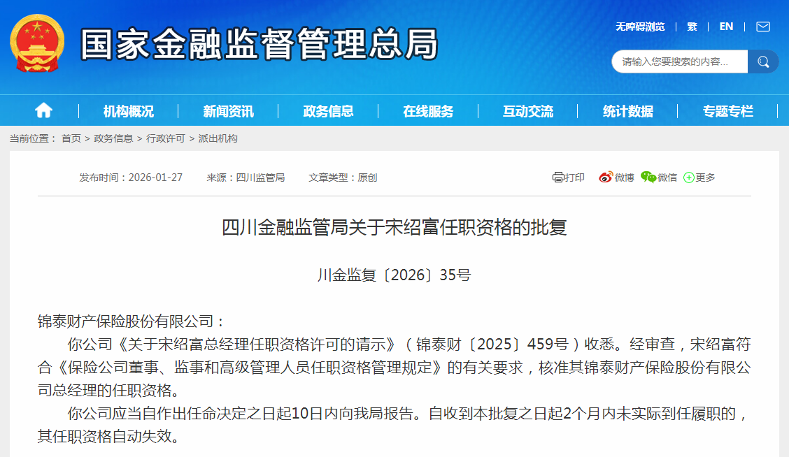 空缺两年半后,锦泰财险新任总经理就位