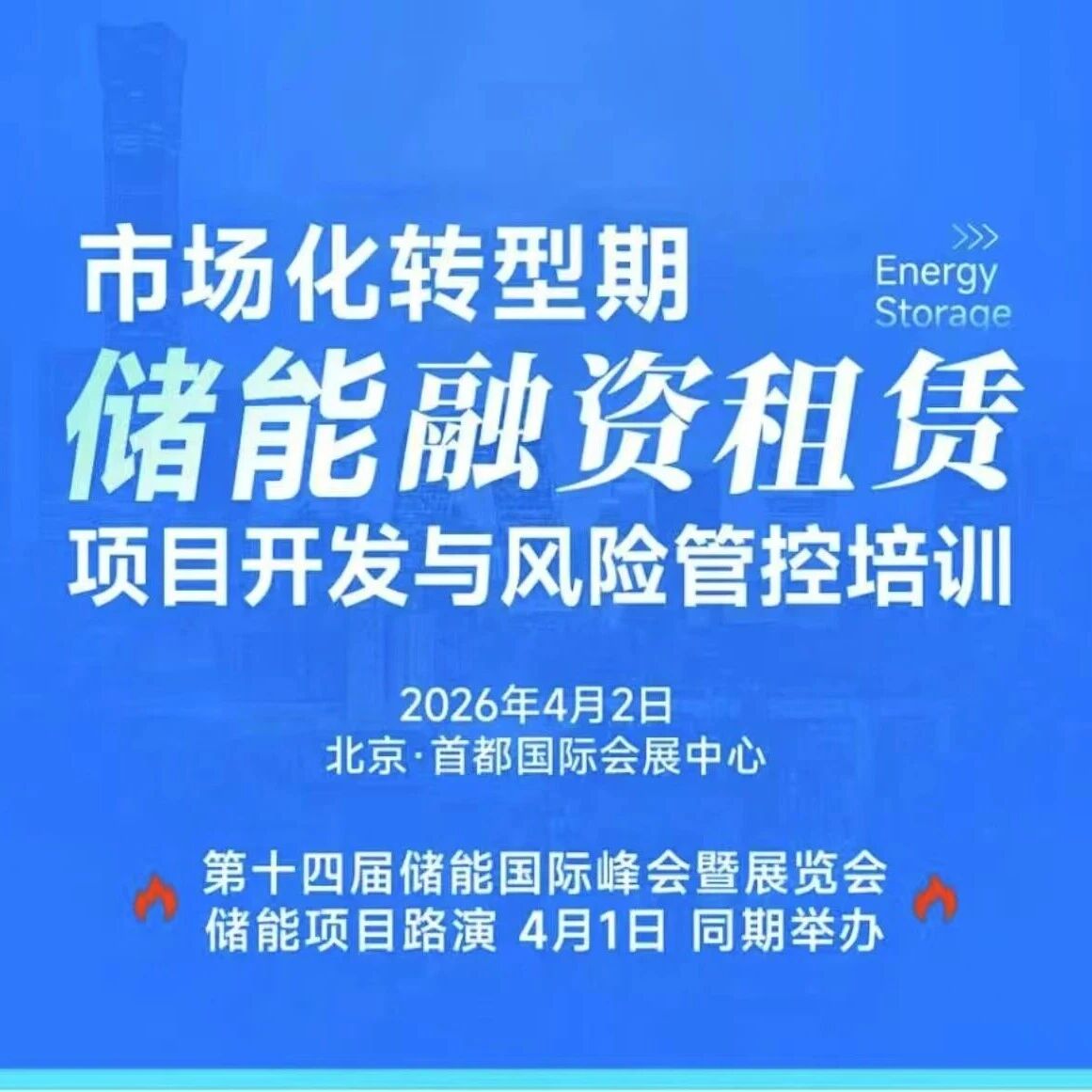 行业趋势与活动背景 - 2026年,储能行业进入全面市场化与高质量发展的新周期,市场被视为万亿级蓝海[1] - 行业面临的核心关切包括资金投向、优质项目筛选以及长周期运营风险控制[1] - 为促进行业交流,第十四届储能国际峰会暨展览会将于2026年3月31日至4月3日在北京举行[1] - 第一财经、中关村储能产业技术联盟、融易学三大机构将于2026年4月1日至2日联合推出《储能与融资租赁业务实战》系列活动,集探展、路演、培训于一体[1] 活动目标与参与方 - 活动旨在打破信息壁垒,推动项目需求与金融工具的直接对接,探索产融结合最优路径[6] - 活动核心参与方包括融资租赁公司的高管、能源业务负责人、项目经理及风控负责人[5] - 储能产业方的参与方包括储能系统集成商、电芯企业、EPC总包方及新能源项目开发商的投融资负责人[5] 活动内容:项目路演与金融对接 - 活动将安排优质储能项目进行路演,项目方将重点呈现其技术经济性与收益确定性[6] - 同时邀请金融机构登台,系统阐述其针对储能赛道的金融产品创新、投资合作逻辑与风险偏好[6] - 资金方将清晰传递其项目筛选标准、合作模式与可提供的增值服务[6] 活动内容:实操培训课程框架 - 培训课程于4月2日举行,目标是打造从认知到决策、从风控到实操的系统性知识闭环[7] - 课程紧扣当前独立储能与工商业储能的市场化进程,分为上午和下午两个部分[7] - 上午课程聚焦投建运营全流程与融资租赁业务的具体开发、尽调及风险管控要点,通过真实案例解析核心实务问题[7] - 下午课程深入独立储能项目开发的技术经济性建模、多元收益组合与资产运营策略,提升专业评估能力[7] - 课程旨在为项目开发方与金融机构搭建共通的分析框架与决策工具[7] 培训课程大纲:上午部分 - 第一部分:新型储能投建运营与融资租赁业务开发,涵盖储能投资逻辑与租赁业务模式[8] - 第二部分:储能电站建设实施要点,包括工商业与独立储能的客户画像、融资租赁收资要点及投资筛选逻辑[9][11] - 第三部分:储能电站运营要点,涵盖工商储运营挑战、用户侧储能案例及独立储能参与电力市场交易和辅助服务的运营要点[10][11] - 第四部分:储能项目风险识别,系统性地从项目收益与风险评估、设备风险、运营风险、建设期风险及运维风险五个维度进行剖析[11][12] 培训课程大纲:下午部分 - 第一章:独立储能市场,分析政策驱动力、核心商业模式演变,以及项目开发全流程的关键节点与核心风险识别[15] - 第二章:技术经济性建模与选型,涉及电芯与系统集成技术选型的成本与安全权衡,以及项目投资收益模型构建与关键变量敏感性分析[15] - 第三章:收益模式与运营策略,分析独立储能的三大核心收益构成,包括容量租赁、电力市场交易等,并涵盖成本价格、系统关键指标、主要收益模式、典型应用场景和商业模式,以及工商储收益测算[15] 行业发展展望 - 行业展望指出,资本正从投资公司向投资产转变,储能资产迎来价值重估和投资热潮[14] - 未来重点在于挖掘储能资产的投资运营价值[14]