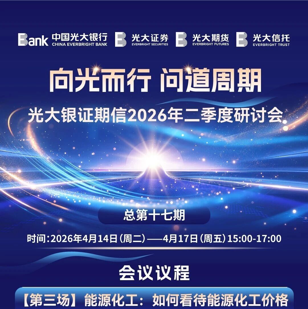 点击 上方"光大证券研究"可以订阅哦 量ank 中国光大银行 ■ 光大证券 ■ 光大 近券 ■ 光大 期货 ■ 光大信托 向光而行 问道周期 光大银证期信2026年二季度研讨会 总第十七期 时间:2026年4月14日(周二) -- 4月17日(周五)15:00-17:00 会议议程 【第四场】农业:二季度农产品核心矛盾探讨 2026年4月17日(周五) 主持人:王 娜 光期农产品研究总监 15:00-15:20 9 l l l l l 生猪:猪价创新低,行业去产能有望加速 三 部 半期农产品研究 H 15:20-15:40 油脂:地缘风险不散,油粕高位震荡 侯雪玲 光期农产品研究员 15:40-16:00 鸡蛋:成本支撑,鸡蛋区间震荡 孔海兰 光期农产品研究员 16:00-16:20 棉花:春播陆续进行,后市走势如何? 孙成震 光期资源品研究员 16:20-16:40 白糖:当能源扰动遇到高库存压力 张笑金 光期资源品研究总监 16:40-17:00 ● 网络参会: https://s.comein.cn/c5sijdnb ● 接入号码: +86-4001510296(中国) +86-01021377168( ...