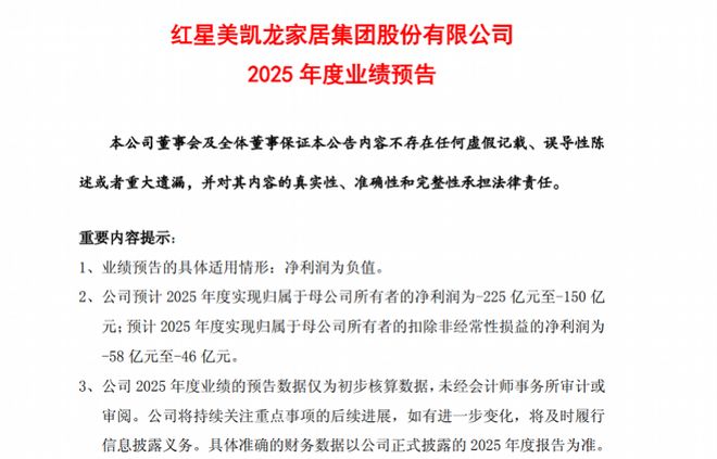 红星美凯龙2025年度预亏超150亿元,主因投资物业减值及资产计提