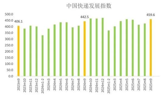 国家邮政局:2025年9月中国快递发展指数为459.6 同比提升3.9%