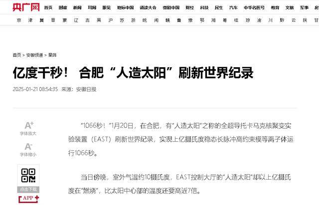 这成绩一下子让全球聚变圈子都震动。紧接着,成都的"中国环流三号"发来好消息,电子温度直冲1.6 亿度。 两个数字不只是技术记录,这背后是中国在能源科技上的主动权已经弯道超车于西方国家 2025年,中国人造太阳实验室又一次被世界关注。就在安徽合肥,EAST装置把等离子体稳定地"燃 烧"到1亿度,还坚持了1066秒。 大家好,我是乔叔,这期咱们看看中国"人造太阳"这项硬核技术,怎么一步步从追赶到领跑,把全球能 源格局彻底改写了。 | 1 1 1 12 | | --- | | 京 津 冀 晋 康 辽 吉 黑 京 苏 浙 城 母 起 盘 德 鄂 湘 军 瑞 川 | 聚变解决的可不只是电费 放眼全球能源,谁都知道靠烧煤和油这套老办法,不管环境还是储备都越来越扛不住。核电能顶点忙, 但铀矿分布不均,中国自己能用的并不富裕,还得提防各种安全问题。 聚变的不同之处挺简单:靠海水里的氢,这东西用不完,一升海水能放的能量顶得上三百升汽油。而 且,不怕泄漏,一旦出事就直接冷却,比起裂变的各种隐患,让人放心多了。 几十年专注成就了今天 对于百姓来说,未来如果聚变技术真能普及,发电成本会大幅降低,供电也不会再因天气出乱子,更不 用为能 ...