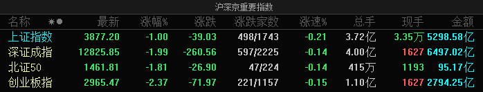 市场整体表现 - 市场早盘震荡下挫,深成指和创业板指一度下跌超过2% [1] - 截至午间收盘,沪指下跌1%至3877.20点,深成指下跌1.99%至12825.85点,创业板指下跌2.37%至2965.47点 [1][2] - 北证50指数下跌1.81%至1461.81点 [2] - 沪深两市半日成交额为1.18万亿元,较上个交易日缩量326亿元 [1][6] 行业板块表现 - 港口航运板块延续强势,海通发展连续2天涨停 [2] - 防御类板块如煤炭和燃气股表现活跃,大有能源在6天内实现5次涨停,国新能源盘中在4天内实现3次涨停 [2] - 银行板块震荡拉升,农业银行盘中涨幅超过2%,股价创历史新高 [2] - 燃气、贵金属、港口航运、煤炭等板块涨幅居前 [3] - 数据中心电源概念股大幅下挫,伊戈尔、中恒电气股价跌停 [2] - 风电、光伏等板块跌幅居前 [3] - 多只权重股走弱,包括阳光电源、中兴通讯、立讯精密出现大跌 [2] 市场交易数据 - 市场热度为19,上涨家数为1128家,持平家数为174家,下跌家数为4136家 [5] - 涨停家数为37家,跌停家数为13家 [5] - 涨停股封板率为75.00%,封板家数为33家,触及涨停家数为11家 [7] - 昨日涨停股票今日平均表现为上涨1.73%,高开率为52%,获利率为55% [7]