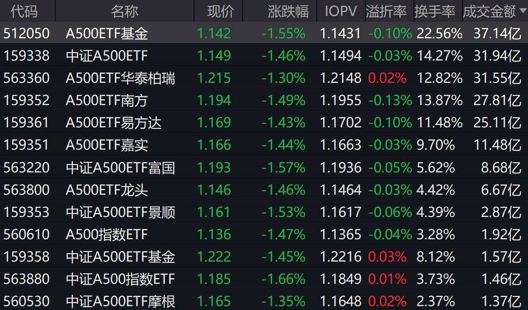 市场早盘震荡下挫,中证A500指数下跌1.5%,3只中证A500相关ETF成交额超31亿元