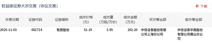 大宗交易情况 - 11月3日发生一笔大宗交易,成交量3.95万股,成交金额202.20万元,成交价为51.19元,与当日收盘价持平[2] - 该笔交易买方为中信证券股份有限公司上海分公司,卖方为中信证券华南股份有限公司佛山分公司[2] - 近3个月内公司累计发生4笔大宗交易,合计成交金额达1.58亿元[2] 股价与资金流向 - 公司11月3日收盘价为51.19元,当日上涨1.77%,日换手率为1.30%,成交额为25.27亿元[2] - 当日主力资金净流入9512.65万元,近5日资金合计净流入9742.31万元[2] - 近5日公司股价累计上涨1.87%[2] 融资数据 - 公司最新融资余额为48.93亿元[3] - 近5日融资余额增加980.66万元,增幅为0.20%[3]