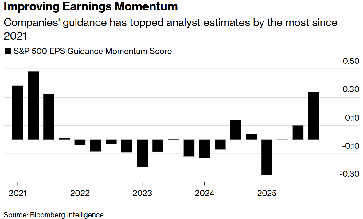 智通财经APP注意到,美国股市近期的抛售动摇了这轮三年牛市的大部分支柱。然而,迄今为止,企业利润基础的支撑依然稳固无损。 人工智能热潮正面临首次持久考验,因为投资者对为AI基础设施建设而进行的大规模借贷持谨慎态度。根据私营数据和一系列裁员公告,劳动力市场看起 来依然不稳定。美联储官员暗示今年可能不再降息,因为关税对通胀的威胁持续存在。 盈利势头改善 这些乐观的预测将在下周面临初步考验,届时一些全球最大的零售商将公布最新财报。随着沃尔玛(WMT.US)和塔吉特(TGT.US)发布业绩,投资者将能近距 离观察美国消费者在特朗普总统的关税制度下的表现。消费者支出约占美国国内生产总值的三分之二。过去几年,其韧性也帮助推动标普500指数接连创下 纪录。 对多头而言,市场的摇摆不定使财务报告变得更加重要。随着又一个财报季进入尾声,这一点很清楚:尽管存在诸多不确定性,企业高管们对未来盈利表达 了乐观态度。 数据显示,在第三季度利润增长15%之后,利润指引动能(即上调盈利预期的标普500成分公司数量与维持或下调预期公司数量的比例)已升至2021年以来的最 高水平。 Horizon Investment 首席投资官 Scott ...