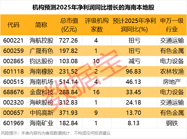 海南板块迎来政策利好 机构预测2025全年净利润预计向好的海南本地股一览
