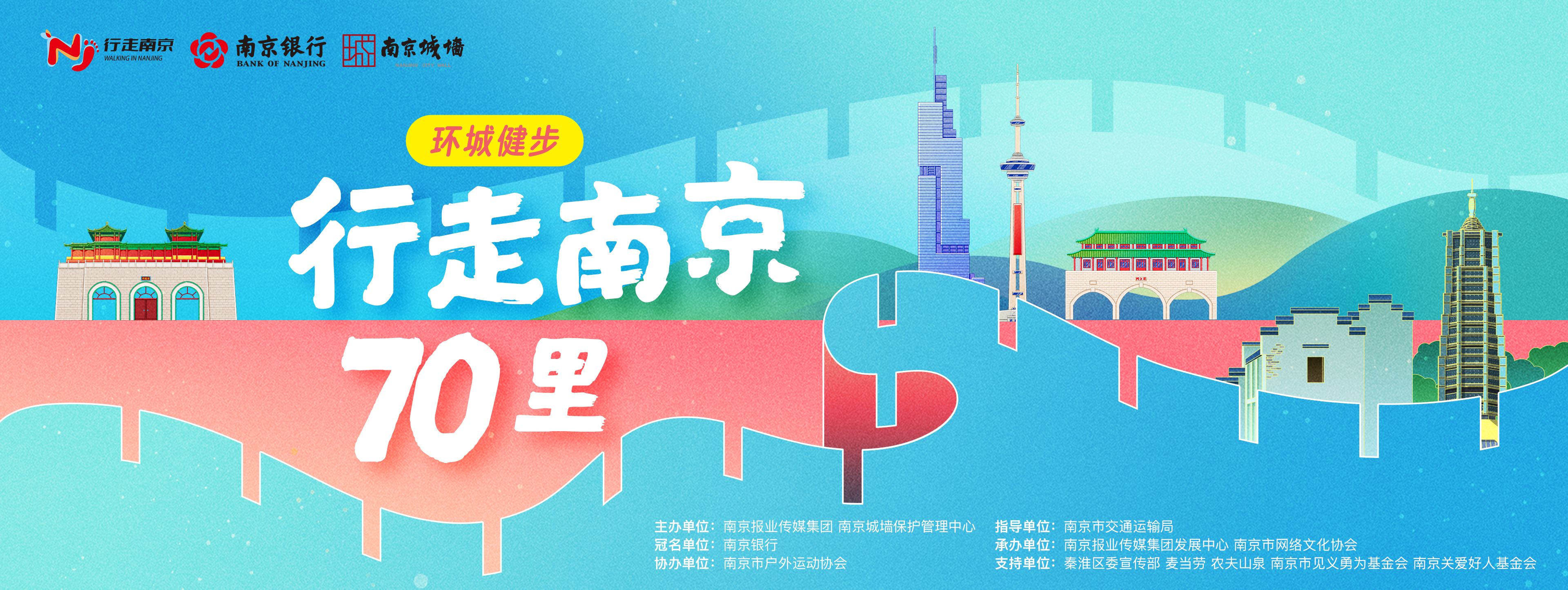 转自:南报网 从2016年至今,"行走南京"系列健步走活动已经连续举办9届。十年间,活动多次把健步路线定在城墙之上。秋日的南京城墙,目之所及都是怡人美景。不 论是中华门瓮城的雄壮、东水关的婉约,还是在台城段俯瞰湖光山色、挹江门上远眺长江,南京城墙构建起的"山水城林"的和谐风光,总是令行走在其中的 人们沉醉不已。而每一次城墙行走活动的火热程度,也向世界展现了南京城墙的魅力与风采,为申遗之路增添一份坚实力量。 相约金陵秋光,共筑城市记忆 本次"行走南京70里"环城公益健步走活动由南京报业传媒集团、南京城墙保护管理中心联合主办,南京银行冠名。 活动报名即将开启,敬请关注"南京发布""南京日报""南京城墙""南京银行发布"等官方微信号了解详情。 十月正好,一起登上明城墙吧,共赏金陵秋韵,10月19日,我们不见不散。 10月19日,2025南京银行"行走南京70里"环城公益健步走活动将在中华门瓮城启幕。我们邀您一起踏上城墙,用脚步丈量城市脉络,于砖石间读懂南京底 蕴。 本次活动设有短程与全程两条路线,均以中华门瓮城为起点。短程路线全长约3公里,终点抵达东水关登城口;全程路线全长约35公里,最终回到中华门瓮 城。 新老朋 ...