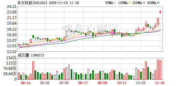 数据宝统计,截至11:17,永太科技成交额29.49亿元,创2022年7月6日以来新高。最新股价上涨 8.92%,换手率16.15%。上一交易日该股全天成交额为29.24亿元。 据天眼查APP显示,浙江永太科技股份有限公司成立于1999年10月11日,注册资本92512.7636万人民 币。(数据宝) (文章来源:证券时报网) ...