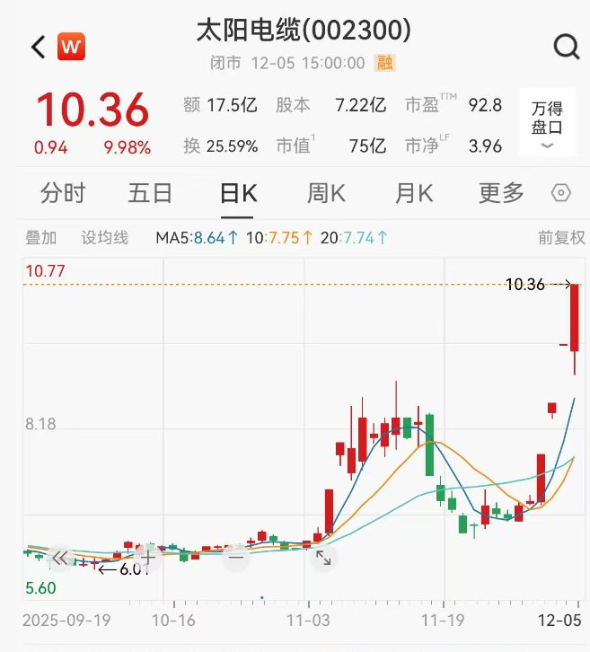 公司股东减持与股权结构变动 - 持股5%以上股东亿力集团已完成减持计划 于11月4日至12月4日累计减持公司股份2166.9974万股 占公司总股本的3% [1] - 减持完成后 亿力集团持有公司股份数量降至9653.18万股 持股比例降至13.36% [1] - 本次减持符合此前披露的计划 不会导致公司控股股东及实际控制人发生变化 [1] 公司股价与市场表现 - 太阳电缆在12月2日至12月5日期间 股价收获“四连板” [1] - 截至12月5日收盘 公司股价涨停板上仍有超7万手封单 [1] - 公司总市值达到75亿元 今年以来股价累计上涨超90% [1] 所属板块市场动态 - 太阳电缆是福建板块和核电板块的热门成分股 [1] - 福建板块与核电板块近期均呈现明显涨势 [1]