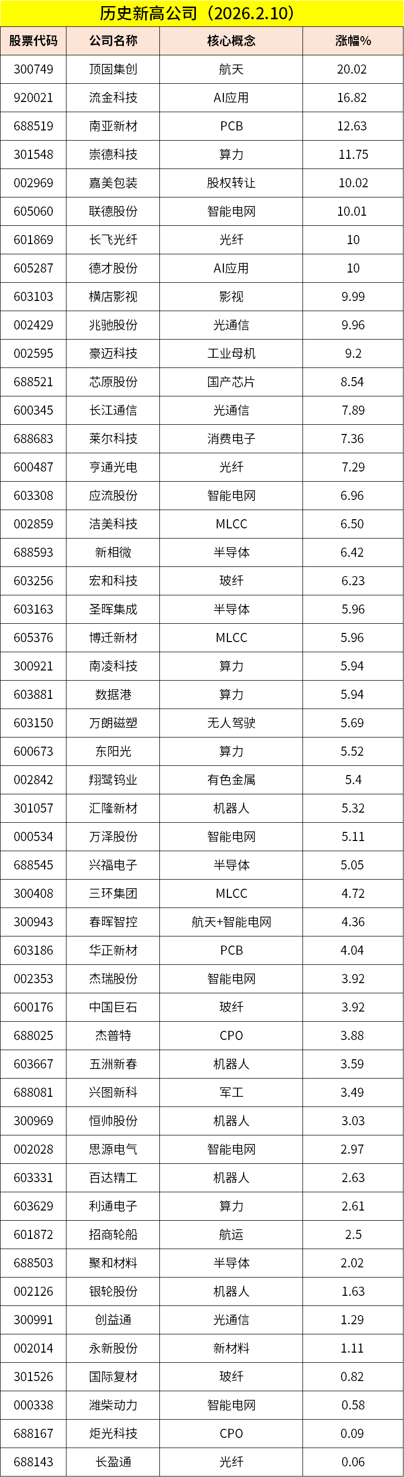 市场整体观点 - 机构认为短期市场或仍维持板块轮动、震荡上行走势 [1] - 德邦证券认为春季行情仍将延续,短期市场或仍维持板块轮动、震荡上行走势 [8] - 东莞证券认为目前A股估值仍处于合理水平,叠加政策面持续发力、经济复苏基础逐步夯实,市场中长期向好趋势未变 [8] - 天风证券认为站在当下节点,景气周期与核心科技仍大概率是春季行情主线 [8] 宏观经济与政策 - 央行发布2025年第四季度中国货币政策执行报告,将继续实施好适度宽松的货币政策 [2] - 央行将加强利率政策执行和监督,促进社会综合融资成本低位运行 [2] - 央行将完善房地产金融基础性制度,助力构建房地产发展新模式 [2] - 央行将持续改革完善贷款市场报价利率(LPR) [2] - 央行将支持更多民营科技型企业、民营股权投资机构发债融资 [2] - 央行将把握好利率、汇率内外均衡,引导短期货币市场利率更好围绕央行政策利率平稳运行 [2] - 央行将引导更多金融资源支持提振和扩大服务消费 [2] - 央行将进一步优化MPA框架,畅通货币政策执行和传导 [2] - 央行将促进资本市场平稳运行 [2] - 央行未来将常态化开展国债买卖操作 [2] - 国家发展改革委等部门发布加快招标投标领域人工智能推广应用的实施意见,积极稳妥推进人工智能在招标投标领域的应用 [2] - 目标到2026年底,招标文件检测、智能辅助评标、围串标识别等重点场景在部分省市实现全覆盖应用 [3] - 目标到2027年底,更多重点场景在全国范围内推广应用 [3] - 国家医保局发布医保领域“高效办成一件事”2026年度第一批重点事项清单,明确所有省份开通职工医保个人账户跨省共济 [3] - 截至2026年1月初,337个统筹地区已开通医保钱包并实现跨省共济 [3] - 清单明确,2026年底前,全国80%的定点医疗机构实现即时结算 [3] - 清单明确,2026年底前,至少开展一批次国家组织药品和高值医用耗材集中带量采购 [3] - 清单明确,2026年底前,基本实现住院分娩生育医疗费用省内跨统筹区直接结算 [3] - 工业和信息化部等五部门办公厅发布《关于加强信息通信业能力建设 支撑低空基础设施发展的实施意见》 [4] - 意见提到,积极推进5G-A产业发展,进一步升级完善现有地面基站设施功能,加快通感融合等技术产业成熟,逐步降低设备成本 [4] - 意见提到,加强低空装备与低空信息通信的融合创新与设备研发,推进5G/5G RedCap模组与低空航空器的适配验证 [4] - 意见提到,探索低空通信、导航、监视功能融合模组研发,加速技术和产业成熟 [4] 海外市场动态 - 当地时间周二,美股三大指数分化,道指续创新高 [5] - 道琼斯工业平均指数收盘涨0.10%至50188.14点 [5][6] - 纳斯达克指数收盘跌0.59%至23102.47点 [5][6] - 标普500指数收盘跌0.33%至6941.81点 [5][6] - 大型科技股多数下跌,特斯拉上涨1.89%,英特尔大跌6.19% [7] - 热门中概股多数走高,纳斯达克中国金龙指数上涨0.87% [7] - 个股方面,阿里巴巴上涨2.15%,京东涨1.21%,蔚来上涨1.43%,小鹏汽车涨1.60%,理想汽车上涨2.94%,腾讯音乐涨3.75% [7] - 纽约3月WTI原油下跌0.6%,收于每桶63.96美元 [7] - 4月布伦特原油下跌0.4%,收于每桶68.80美元 [7] - 纽约尾盘现货黄金下跌0.62%,报每盎司5026.20美元 [7] - 现货白银下跌3.09%,报每盎司80.82美元 [7] 行业与公司动态 - 周大福方面回应称,春节后将对黄金产品调价是真的,但时间、幅度尚未确定 [4] - 葛卫东10亿元认购江淮汽车定增股票 [8] - *ST立方公告股价波动核查工作已完成,2月11日开市起复牌 [8] - 深交所发布关于*ST立方股票交易的风险提示,指出其存在重大违法强制退市风险 [4] - 金浦钛业公告,南京钛白即日起临时停产,预计不会对生产经营产生重大影响 [8] - 横店影视发布股价异动公告,称《飞驰人生3》等三部春节档电影市场票房尚存在不确定性 [8] - 中泰化学公告计提减值准备2.31亿元 [8] - 有研硅发布业绩快报,2025年归母净利润同比下降10.14% [8] - 中芯国际2025年第四季度净利润12.23亿元,同比增长23.2% [8] - 中国铁建公告近期中标10个单体15亿元以上项目,金额合计451.42亿元 [8] - 金地集团公告1月份签约金额12.2亿元,同比下降45.78% [8] - 磁谷科技公告股东宝利丰拟减持不超3%公司股份 [8]