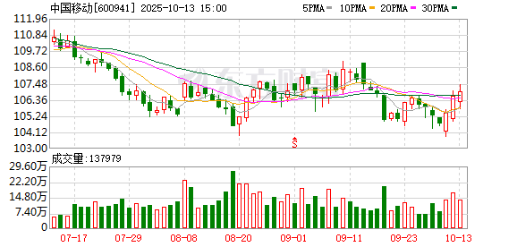 股市必读:中国移动(600941)10月13日主力资金净流入2308.94万元,占总成交额1.57%