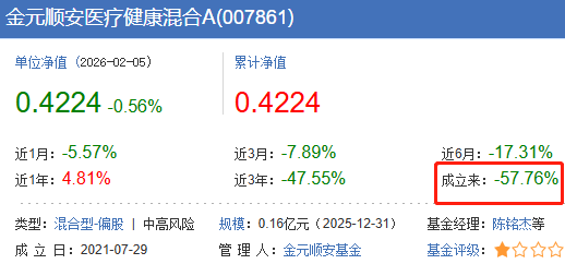 高位成立难解套 金元顺安医疗健康成立4年半亏约6成