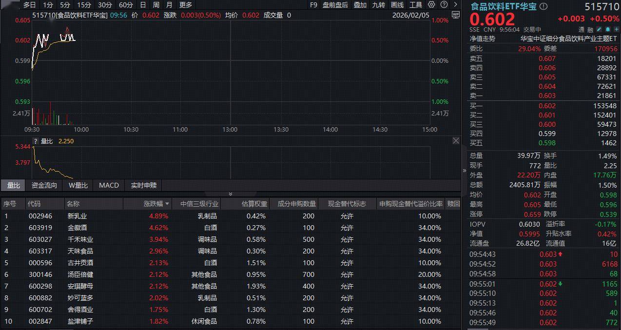 ETF盘中资讯|茅台开卖蓝莓气泡酒!吃喝板块继续上攻,食品饮料ETF华宝(515710)上探1%!
