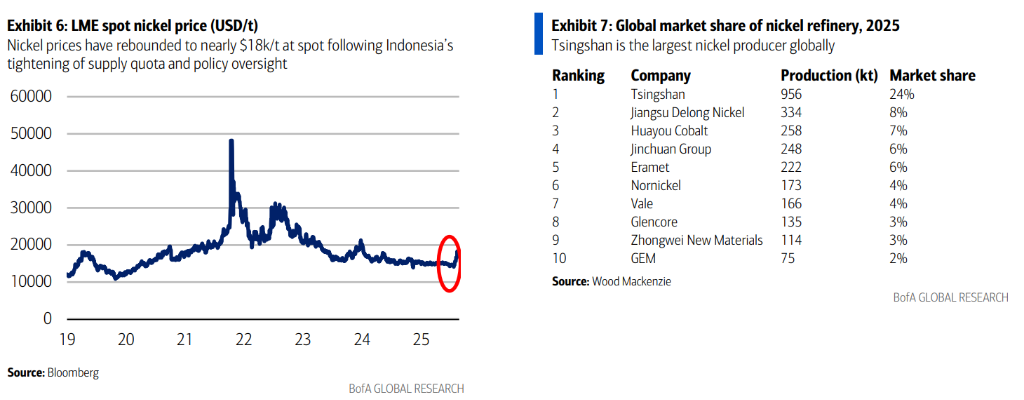 公司核心战略与业务版图 - 全球最大的不锈钢及镍生产商青山集团正将其工业版图从核心的镍与不锈钢业务,迅速扩展至铝业及新能源电池领域,试图打造一个覆盖从矿山到终端材料的全产业链帝国 [1][7] - 公司年收入达565亿美元,位列《财富》世界500强第247位 [1] - 公司正利用其在印尼建立的成熟工业园区模式,试图复制其在镍产业的成功路径至铝业 [1][8] 镍业务:市场地位与影响 - 青山集团是全球镍业霸主,占据25%-30%的市场份额 [1][6] - 公司镍产量市场份额为24%,位居全球第一 [5] - 随着印尼收紧供应配额及加强政策监管,现货镍价近期反弹至近18000美元/吨,公司的一举一动将对价格走向产生关键影响 [1] - 2023年公司镍金属量产能约110万吨,在印尼的IMIP园区拥有约53条RKEF产线,年产约420万吨NPI(镍铁) [14] - 为应对LME镍市场波动,公司已将其鼎信工厂生产的镍阴极注册为LME交割品牌,并计划申请额外约5万吨的LME注册产能,以加强对冲能力 [15] 不锈钢业务:规模与升级 - 不锈钢业务是公司的基石,2023年产量超过1600万吨 [14] - 公司正在通过收购和合作向高利润区转移,例如2025年收购浦项(POSCO)在中国的核心不锈钢资产(如张家港浦项),并加深与其在印尼的合资合作,重点布局冷轧、汽车板等高附加值产品 [14] 铝业扩张:复制成功模式 - 公司正在将其在镍产业中验证过的“矿山-园区-冶炼”模式复制到铝业 [8] - 目前,公司在印尼拥有约50万吨/年的原铝产能,主要通过与华峰集团合资的华青项目运营 [8] - 公司与信发集团在印尼推进大规模合资项目,包括Taijing项目和Juwan项目,在建及规划产能超过100万吨/年 [8] - 具体项目进展: - 华青项目(Huachin):一期25万吨已于2023年投产;二期25万吨预计2025年完全达产;长期规划总产能为100-200万吨/年(包括400万吨氧化铝) [9] - Taijing项目:规划产能60万吨/年,2024年已开始建设,预计2026年第三季度完工 [9] - Juwan项目:一期25万吨预计2025年下半年投产;二期预计2026年第一季度至第二季度启动;总规划产能60-100万吨/年 [9] - 电力供应是铝业项目达产的关键瓶颈,自备电厂电力可能不足以支撑所有新增产能,剩余产能高度依赖新的自备电厂建设,新电力设施预计要到2027年中期才能完工 [9][10] 新能源电池业务:全产业链布局 - 公司新能源业务旗舰为瑞浦兰钧(REPT Battero),已跻身全球电池装机量前十,储能电池出货量位居全球前五 [7] - 2025年前三季度,瑞浦兰钧在户用及工商业储能电池出货量方面排名全球第一 [12] - 2025年上半年,瑞浦兰钧在重卡电池出货量中排名中国第二 [12] - 公司总规划电池产能超过90 GWh [13] - 公司通过印尼项目掌控镍钴等电池原材料,并与华友钴业、格林美等合资生产电池前驱体材料 [11][13] - 公司建立电池回收网络以完成产业链闭环 [13] - 大众汽车集团已于2022年与华友钴业及青山集团签署谅解备忘录,旨在印尼和中国分别建立上游原材料合资企业和下游前驱体及正极材料合资企业 [13]