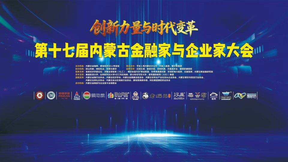 12月12日,以"创新力量与时代变革"为主题的第十七届内蒙古金融家与企业家大会隆重闭幕, 2025•蒙域U35-U45杰出青商榜单成功发 布,内蒙古金融行业协会理事年会同期举行,来自自治区经济领域官员、专家学者及金融机构高管、商界领袖、青商代表300余人共聚一 堂,盘点2025,把脉2026,研讨内蒙古最新一轮改革可能的方向和力度,激辩实现内蒙古经济高质量发展的突围之道。 活动由内蒙古金融网、蒙域经济30人专家组主办;平安人寿内蒙古分公司、宇航人集团、额尔敦集团联合主办;阴山优麦、神驼乳业、 老绥元餐饮协办;古井贡酒、钉钉•纵横云、汉森红酒、维信羊绒、龙驹奶酒、万盛昌水业、国瑞联康医院品牌支持;首席经济学家论 坛、洪略全球智库、精彩纷呈RBF商业联盟、世界青商俱乐部、环球影响力智库、北宸智库、内蒙古新金融研究院智库支持;美国凯泽 大学、比利时列日大学HEC列日高商、意大利马可尼大学、富有国际教育(AIEI)集团学术支持;内蒙古金融行业协会、内蒙古经济学 会、内蒙古品牌建设促进会、内蒙古农牧业产业化龙头企业协会、内蒙古餐饮与饭店行业协会、内蒙古主持礼仪协会、内蒙古自治区烧 麦行业协会、蒙域青商俱乐部、阿拉善盟骆 ...