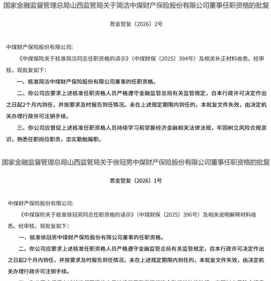 炒股就看金麒麟分析师研报,权威,专业,及时,全面,助您挖掘潜力主题机会! 来源:晋才晋商 1月20日,国家金融监督管理总局山西监管局发布两则批复,核准简洁和徐冠男担任中煤财产保险股份 有限公司董事的任职资格。 这是中煤保险继2025年10月迎来王晓琳、张树国两位副总经理后又一重要 人事变动。 中煤保险作为山西省属国有保险企业,自2008年成立以来就肩负着为煤炭等高危行业提供保险服务的使 命。 本次人事调整发生在公司计划增资3亿元、股东结构变化的背景下,引人关注。 01 人事布局,两个月四位高管履新 2026年初的这次董事任命,是中煤保险近期一系列人事变动的延续。根据监管批复,简洁和徐冠男均正 式成为中煤保险董事。 公司要求这些新任职人员严格遵守监管规定,并在批复作出之日起2个月内到 任。 去年10月13日,国家金融监督管理总局山西监管局已核准王晓琳和张树国中煤保险副总经理的任职资 格。 张树国尤为值得关注,他不仅现任公司党委委员、副总经理,还兼任欺诈风险管理负责人、首席 信息官和山西分公司党委书记。 王晓琳则是一位女性高管,现任中煤保险党委委员、副总经理、纪委委员、党委办公室主任、办公室总 经理。 她在中煤保 ...