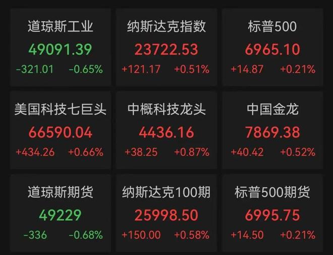 美股市场主要指数表现 - 1月27日美股开盘涨跌不一,道琼斯工业平均指数下跌0.65%至49091.39点,下跌321.01点 [1][2] - 纳斯达克综合指数上涨0.51%至23722.53点,上涨121.17点 [1][2] - 标普500指数上涨0.21%至6965.10点,上涨14.87点 [1][2] 期货及特定板块指数表现 - 道琼斯期货指数下跌0.68%至49229点,下跌336点 [2] - 纳斯达克100期货指数上涨0.58%至25998.50点,上涨150.00点 [2] - 标普500期货指数上涨0.21%至6995.75点,上涨14.50点 [2] - 美国科技七巨头指数上涨0.66%至66590.04点,上涨434.26点 [2] - 中概科技龙头指数上涨0.87%至4436.16点,上涨38.25点 [2] - 中国金龙指数上涨0.52%至7869.38点,上涨40.42点 [2] 行业及个股表现 - 银矿股集体下挫,赫克拉矿业跌2.1%,Endeavour Silver跌1.5%,科尔黛伦矿业跌1.5%,Silvercorp Metals跌1.4% [2] - 医疗保险保险公司股价走低,联合健康跌近17%,哈门那跌超16%,西维斯健康跌近10% [2] - 康宁公司股价涨超7%,因Meta将向其支付高达60亿美元的采购费用 [3] - 通用汽车股价涨超5%,公司预计2026年调整后每股收益为11美元至13美元 [3]