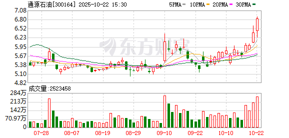通源石油今日上涨7.05%,全天换手率43.27%,成交额16.59亿元,振幅10.43%。龙虎榜数据显示,机构 净买入1708.79万元,营业部席位合计净卖出999.17万元。 深交所公开信息显示,当日该股因日换手率达43.27%上榜,机构专用席位净买入1708.79万元。 近半年该股累计上榜龙虎榜13次,上榜次日股价平均涨0.08%,上榜后5日平均跌5.15%。 资金流向方面,今日该股主力资金净流入770.97万元,其中,特大单净流入3168.74万元,大单资金净流 出2397.77万元。近5日主力资金净流入1.15亿元。(数据宝) 通源石油10月22日交易公开信息 | 买/ | 会员营业部名称 | 买入金额(万 | 卖出金额(万 | | --- | --- | --- | --- | | 卖 | | 元) | 元) | | 买一 | 机构专用 | 7135.83 | 5626.86 | | 买二 | 机构专用 | 1678.87 | 1575.33 | | 买三 | 机构专用 | 1674.76 | 1638.63 | | 买四 | 机构专用 | 1645.79 | 1585.65 | | 买五 | 东 ...