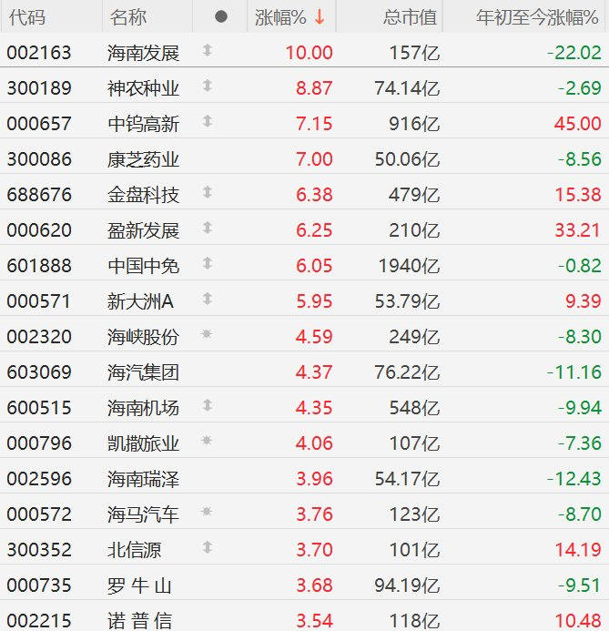 A股异动丨海南自贸概念表现强势,海南发展涨停